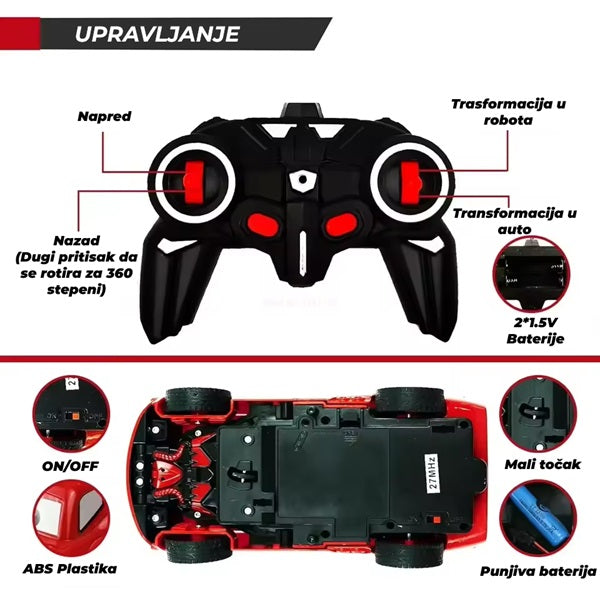 - Automatska transformacija: Pritisnite dugme na daljinskom upravljaču i automobil se pretvara u robota.