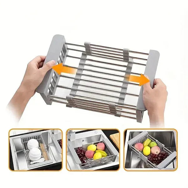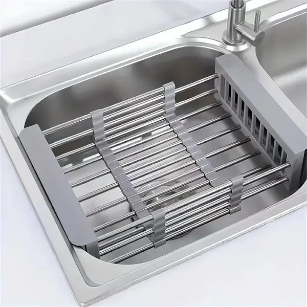 Prenosiva čelična korpa za sudoperu je praktično rešenje za pranje i sušenje posuđa. Podesiva je po dužini i izrađena od nerđajućeg čelika i plastike, sa izdržljivom konstrukcijom.
