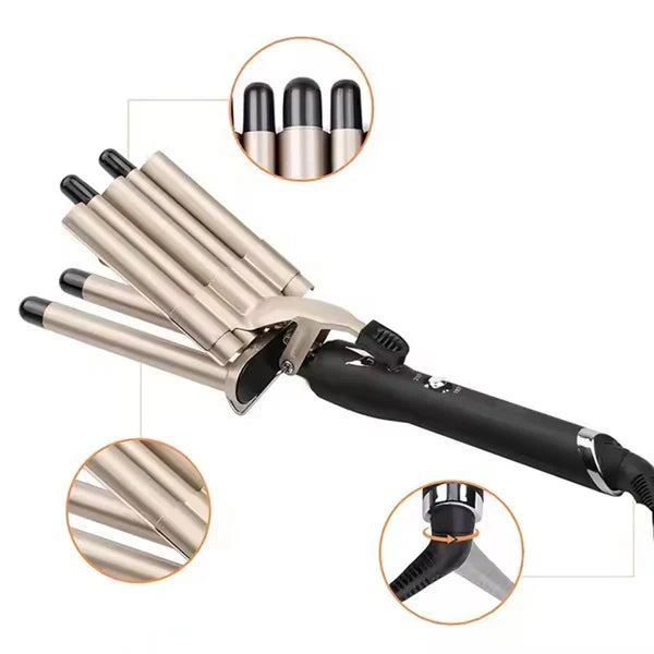 - Pet keramičkih cevi: Jedinstveni dizajn sa pet cevi omogućava stvaranje velikih talasa u kratkom vremenu, savršeno za sve tipove kose.