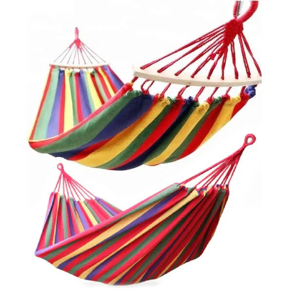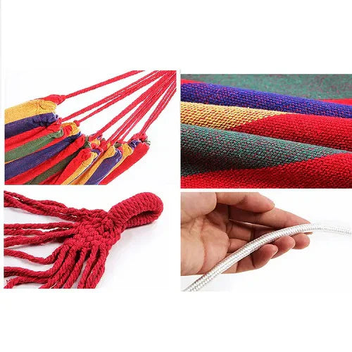 Viseća ljuljaška od pamuka, savršena za opuštanje na otvorenom. Izdržljiva i jednostavna za prenos.