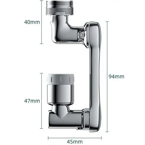 Zglobni univerzalni nastavak za česmu je savršen dodatak koji će vam olakšati svakodnevne aktivnosti u kuhinji i kupatilu. Sa rotacijom od čak 1080 stepeni, ovaj nastavak omogućava lak pristup svakom uglu sudopere, čineći pranje posuđa, voća, povrća, ali i pranje kose i ruku u kupatilu jednostavnijim i efikasnijim. Njegova svestranost i jednostavna montaža bez alata čine ga neophodnim dodatkom svakoj česmi.
